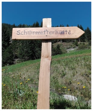 Die Gehzeit bis zur Schönwetterhütte beträgt ca. 1 Stunde. und ist auch mit Kindern leicht zu bewältigen.
